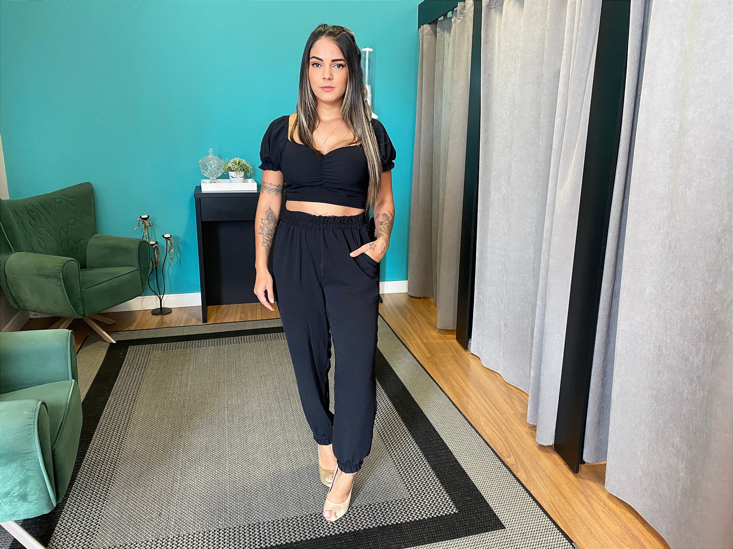 Uma textura super diferenciada para peças de beachwear! O tecido Dunas possui textura de poá (pontos ou dots) em alto relevo, com visual feminino, romântico e irreverente. Seu toque é suave, com boa elasticidade e caimento perfeito para peças. A calça é estilho jogger com elástico na barra e na cintura, além de vestir super bem é uma calça super despojada que combina com tudo, podendo usar tanto com salto ou com tênis. Essa calça é uma peça curinga que você precisa ter no guarda roupa.