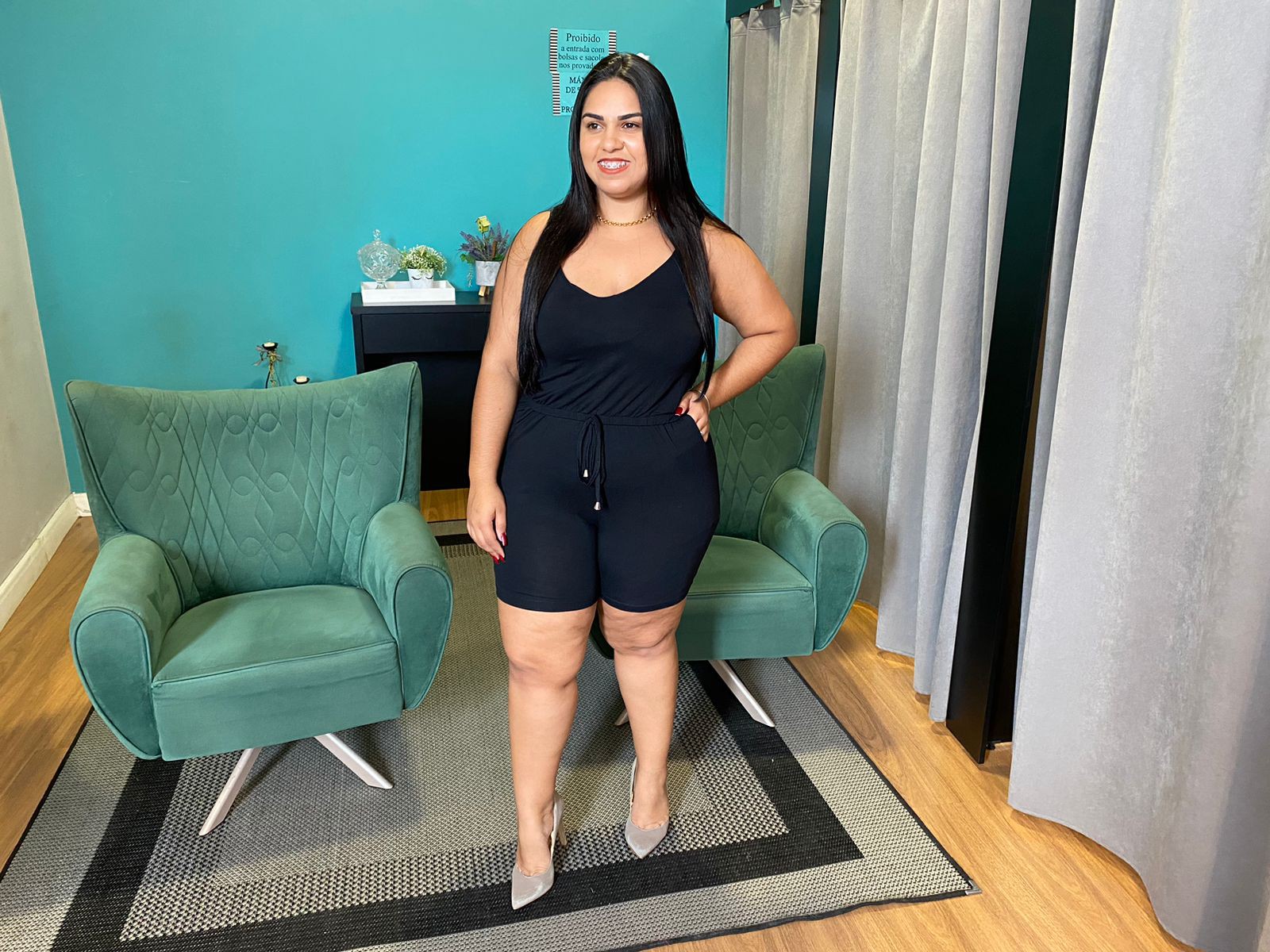 Macaquinho Curto Elástico Na Cintura Plus Size . Confeccionado em Viscolycra com modelagem incrível, não marca o abdome e as alças além de confortável são muito elegante. Possui elástico na cintura que da aquela modelagem que a gente ama, deixando o macaquinho ainda mais elegante e despojado.